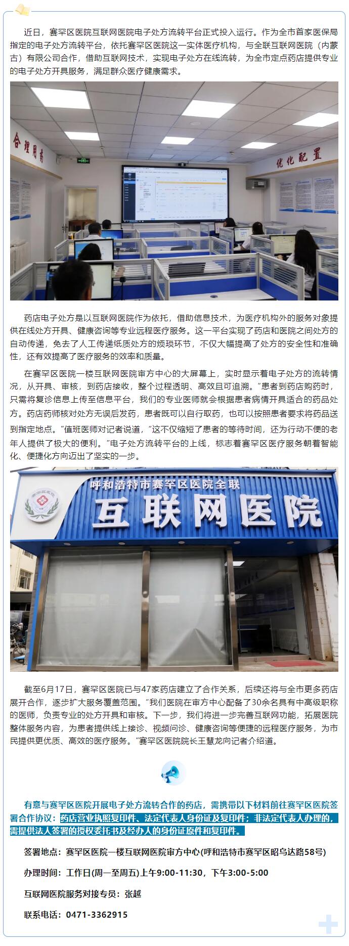 【旗县区动态】赛罕区:全市首个互联网医院电子处方流转平台落户赛罕区