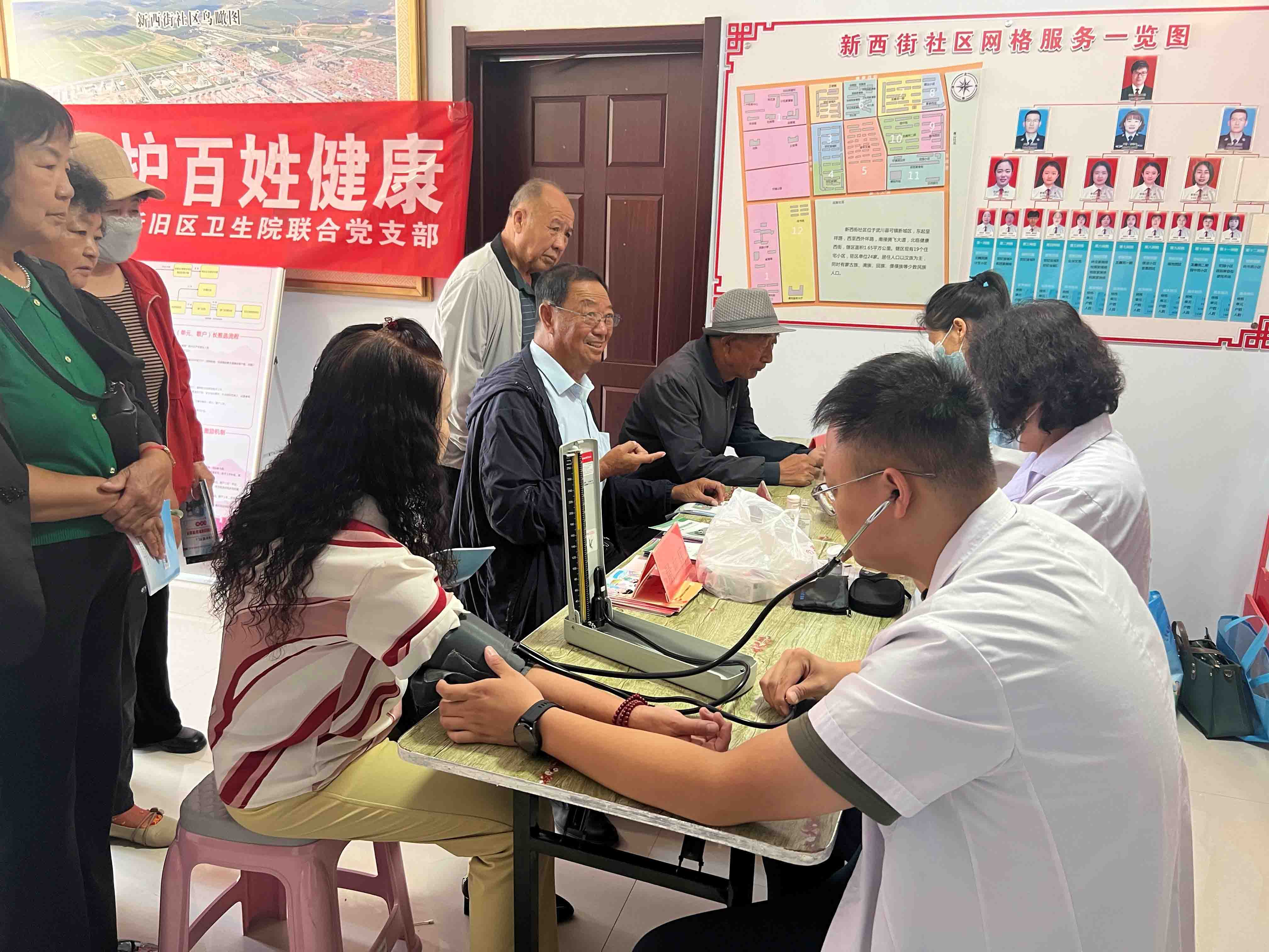 活动中,医护人员为居民免费量血压、测血糖,提供常见病问诊、用药指导等基础医疗服务。